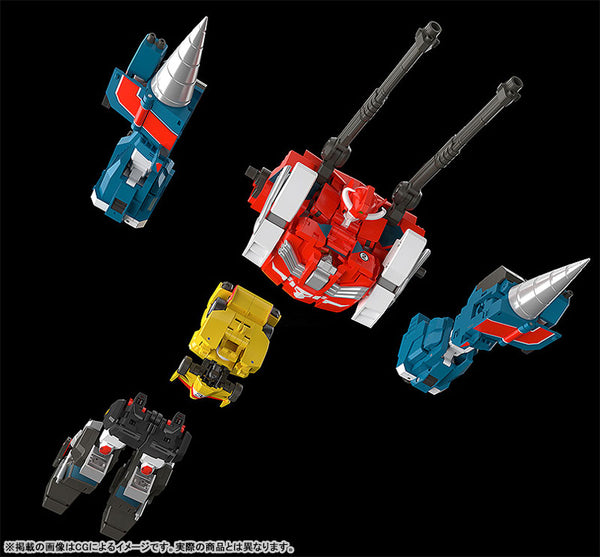 · Comes as a four-unit set comprising the Big Lander, Turbo Lander, Mach Lander, and Drill Lander. Each of the four Landers are completely transformable. · Includes two land cannons, a turbo rifle, a mach shot, and a drill laser. The three weapons aside from the land cannons can be combined to form the Bison Eliminator weapon. · No additional parts are required for the complete combination! Interchangeable hand parts are included.