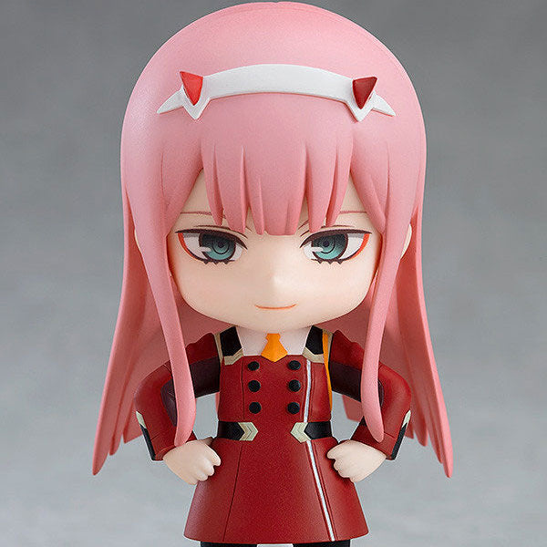 From the popular anime series "DARLING in the FRANXX" comes a reissue of the Nendoroid of Zero Two wearing her uniform! She comes with three face plates including a fearless smile, an innocent smile with closed eyes as well as a sidelong glance with an open mouth that can be used to display her sucking a lollipop or with her tongue out!