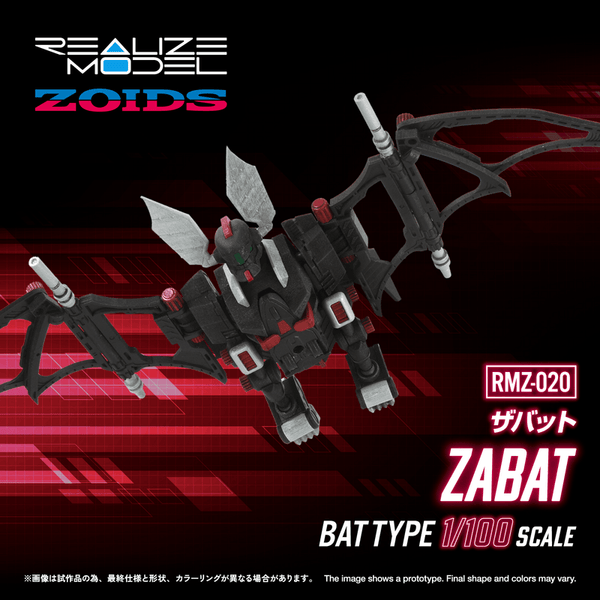 A specially designed articulation system allows full-body movement, enabling various action poses unique to bat-type Zoids, such as flight poses and hanging poses. The homing bomb stored in the abdomen is removable. The head can be assembled for either autopilot mode or manned flight mode. A pilot figure (general soldier) is included and can be seated in the cockpit for the manned flight mode.