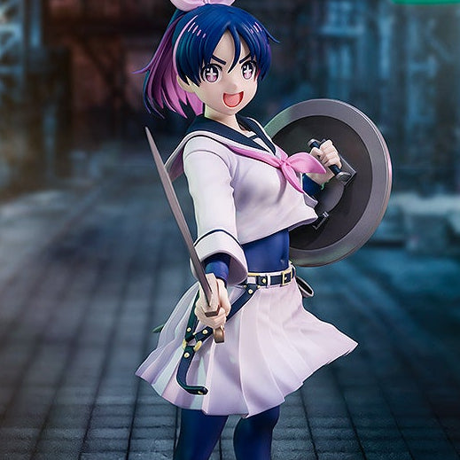 Aki Jougamine, a second-year trainee Brave at the Academy, a Brave Training School, has been turned into a figure with a striking yet adorable pose as she readies her sword and shield! The light and airy sculpting captures the flowing features of the collar on her sailor uniform and her pleated skirt fluttering in the wind. Her iconic eyes and the pink accent in her ponytail have also been recreated in great detail. Be sure to add this recreation of the troublemaker, who is driven by her own sense of justice, to your collection.