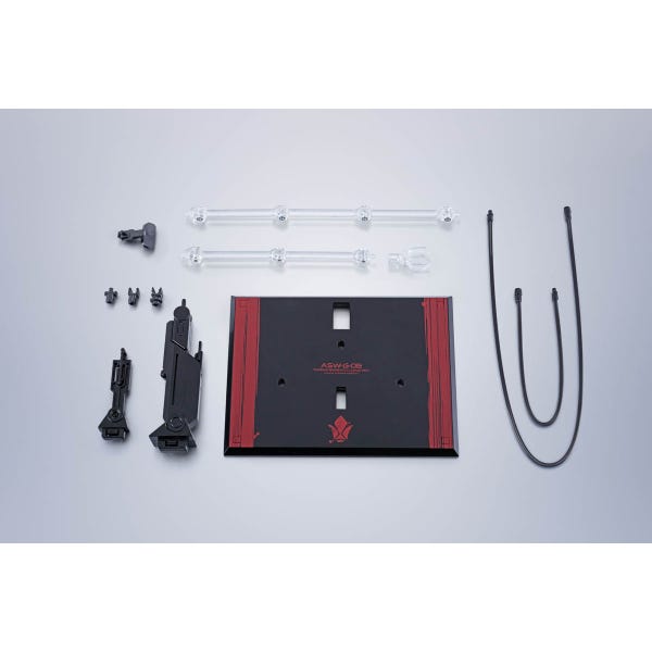 The set includes a pair of hands, giant mace, two leg "pile bunkers," two hidden arms, two tail-blade cables, eye effect parts, and a stand.